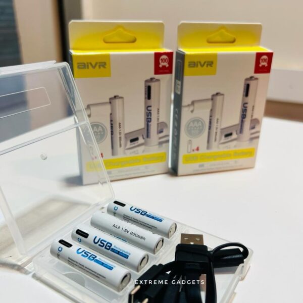 AiVR USB-C Rechargeable Batteries 4pcs AAA 900 mWh Type-C