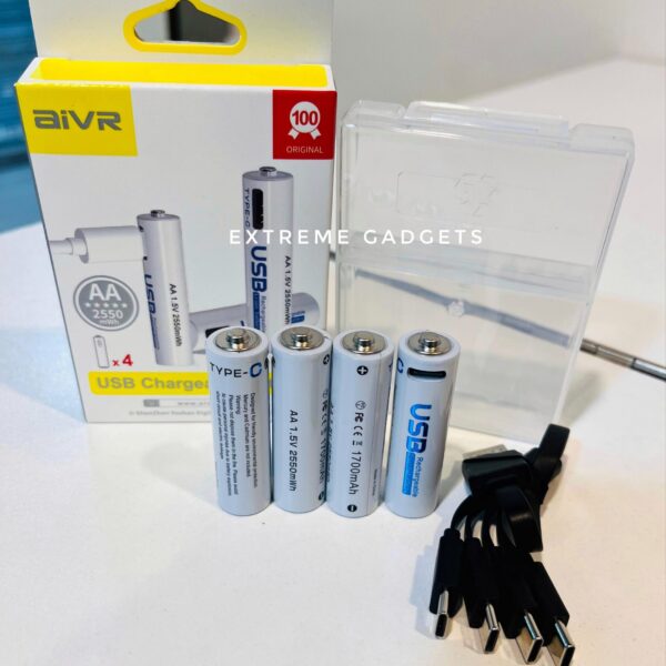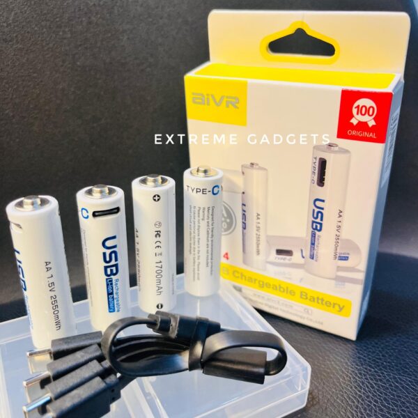 AiVR USB-C Rechargeable Batteries 4pcs AA 2550 mWh Type-C
