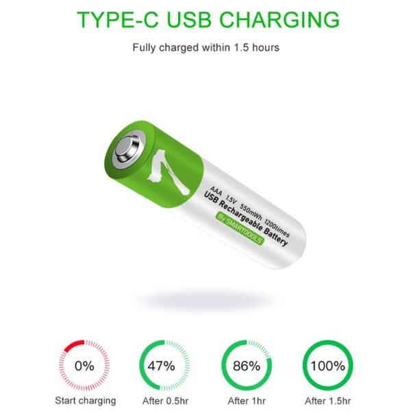 Smartools 1.5V Type-C Rechargeable Batteries AAA (4-Pack) With Type-C Cable