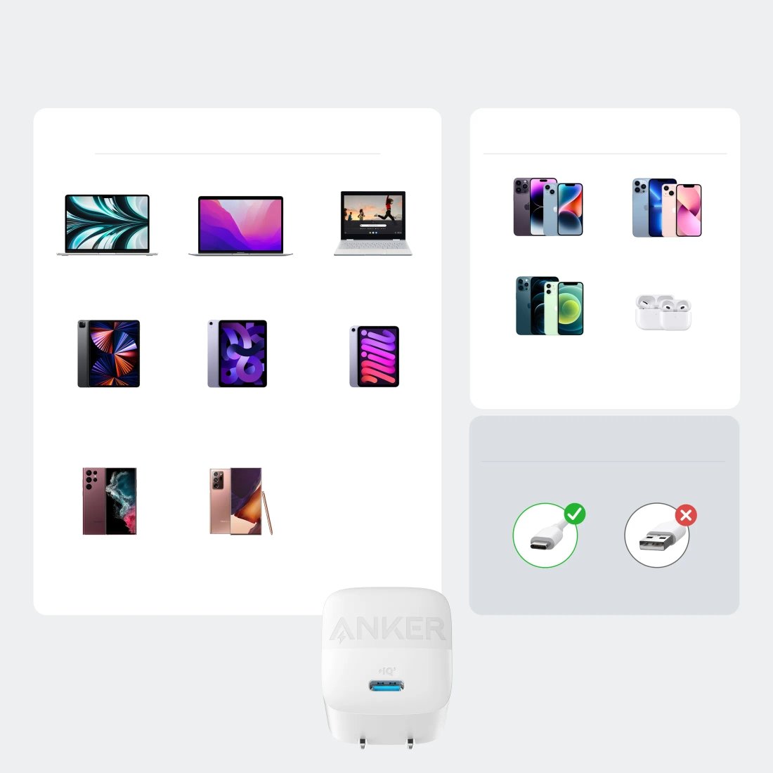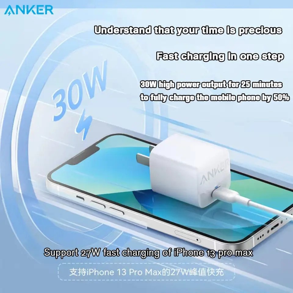 The Anker 313 GaN 30W Foldable Charger PIQ 3.0 The secret to our 313 wall charger’s success is under the hood. Gallium nitride technology means more efficient charging and dramatically less heat, but all in an incredibly small footprint. The Only Charger You Need Say goodbye to your old chargers. This Anker adapter has the power you need to charge your phone, tablet, and MacBook Air from a single tiny charger