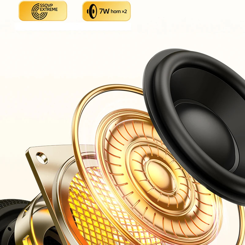 • Dual 7W Speakers (total 14W): The presence of two speakers delivers stereo sound, creating a wider and more immersive listening experience compared to a single-speaker design.