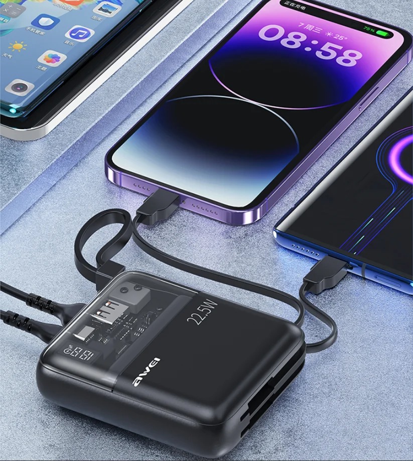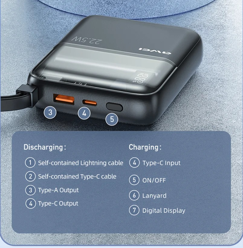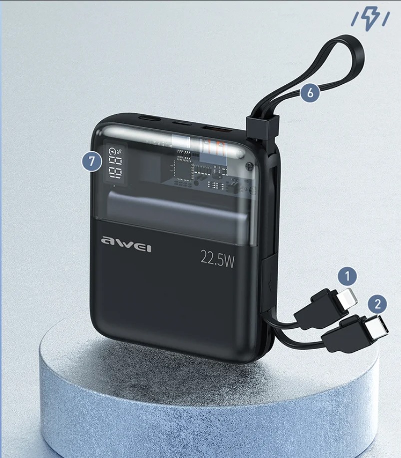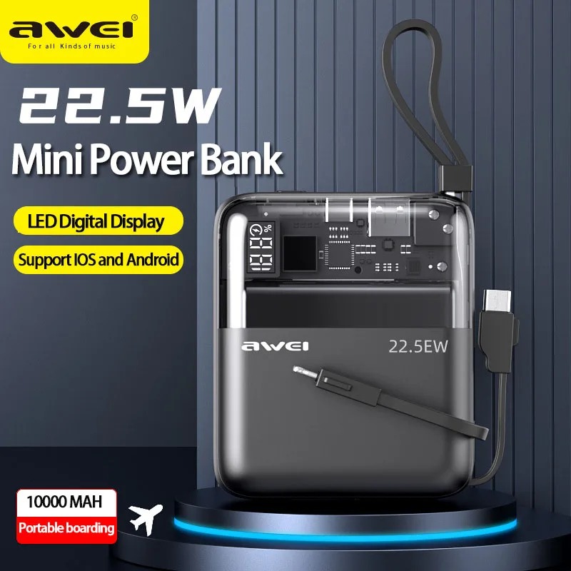 Awei P149K 22.5W Mini Portable Power Bank 10000mAh With Cable