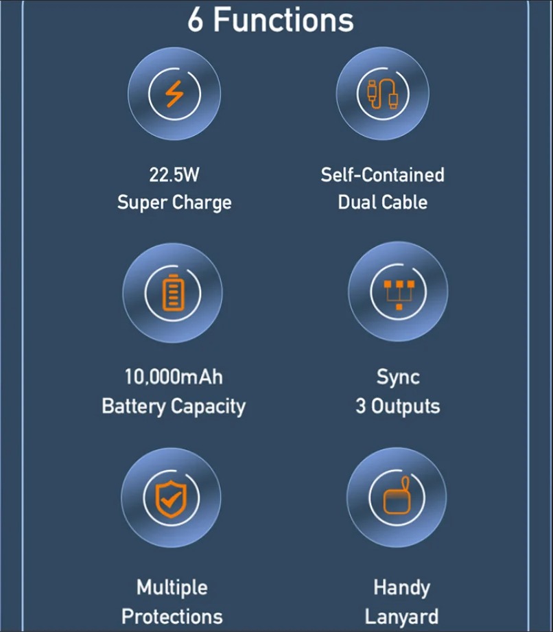 - 22.5W fast charging output for quick power delivery to your devices