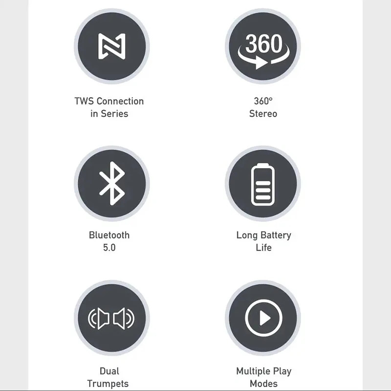 - Large Trumpets and Radiator: The speaker uses larger 52mm size trumpets and a 50mm low-frequency radiator to deliver clear highs, immersive mids, and deep, rich bass. This combination aims to provide a well-rounded sound experience for music, movies, or podcasts.