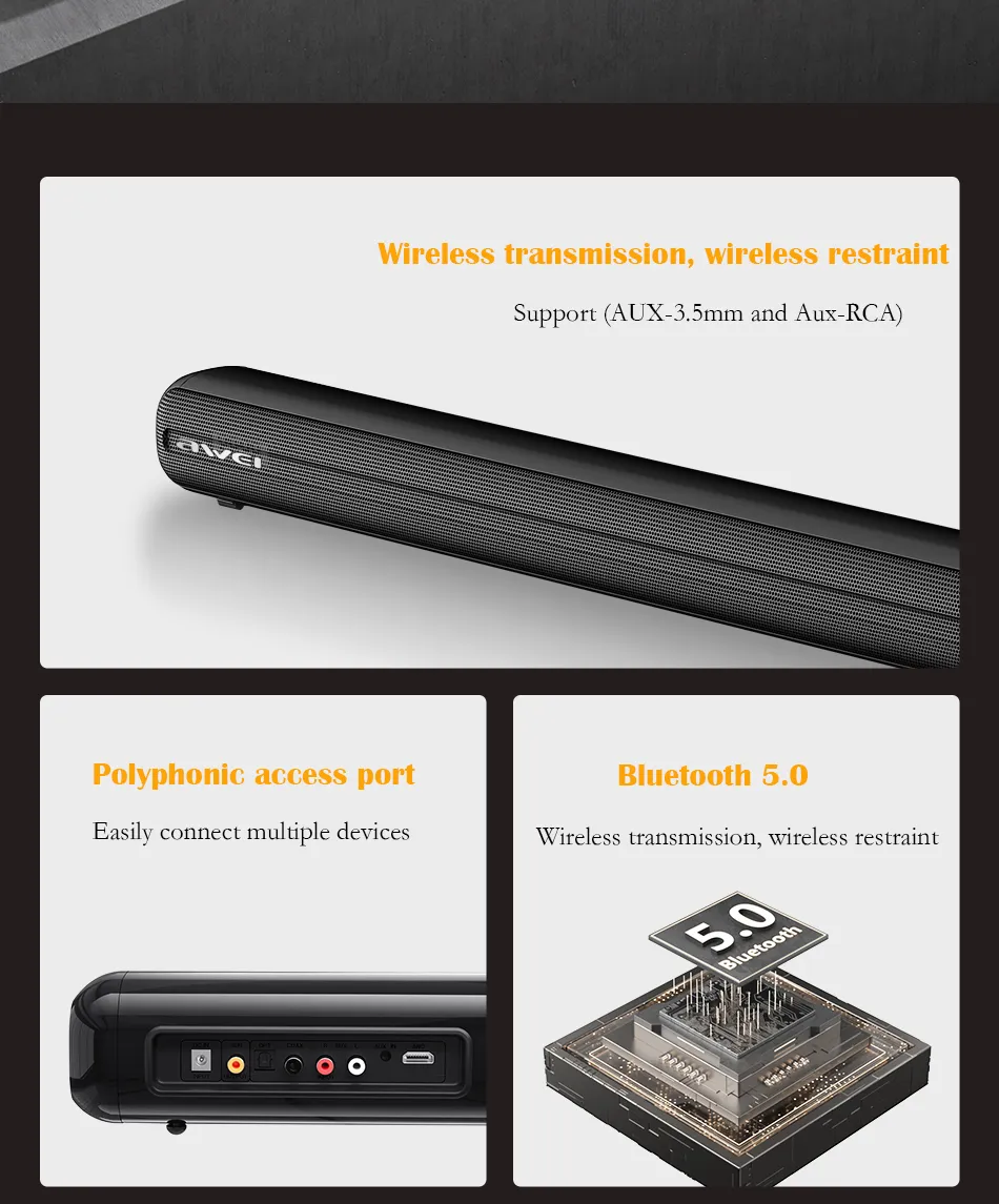 Awei Y520 Soundbar Wireless Surround Bluetooth Home TV Speaker Home Sound Box System price in Bangladesh is 12,950 BDT