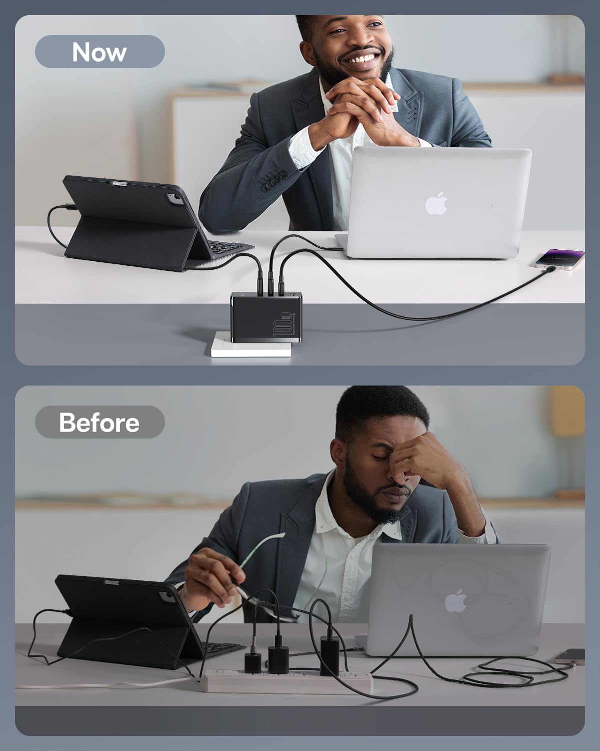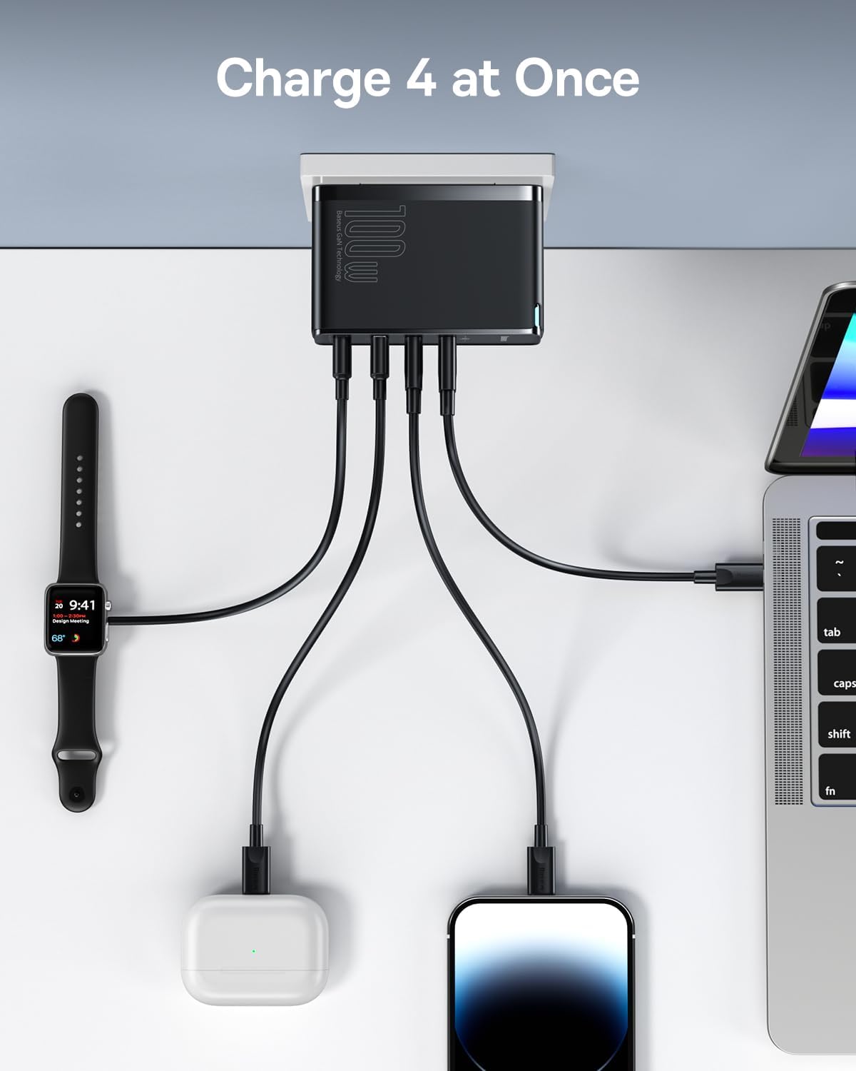 - 100w Charger for 4 Devices: Save 75% of charging waiting time by fastly charging 4 devices simultaneously via BPS II intelligently power allocation. Notably, each independent port of this wall charger is the fast-charging port for 100W & 60W, better than the average 22.5W USB-A ports on the market.