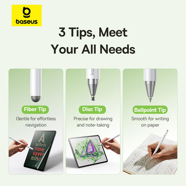 - Baseus Smooth Writing III offers high sensitivity, making every movement smooth and natural. The disc-shaped tip made of high-quality polymer provides precise and flexible reactions, ideal for taking notes, drawing or manipulating applications. The stylus does not damage the screen and allows for immediate response without delay.