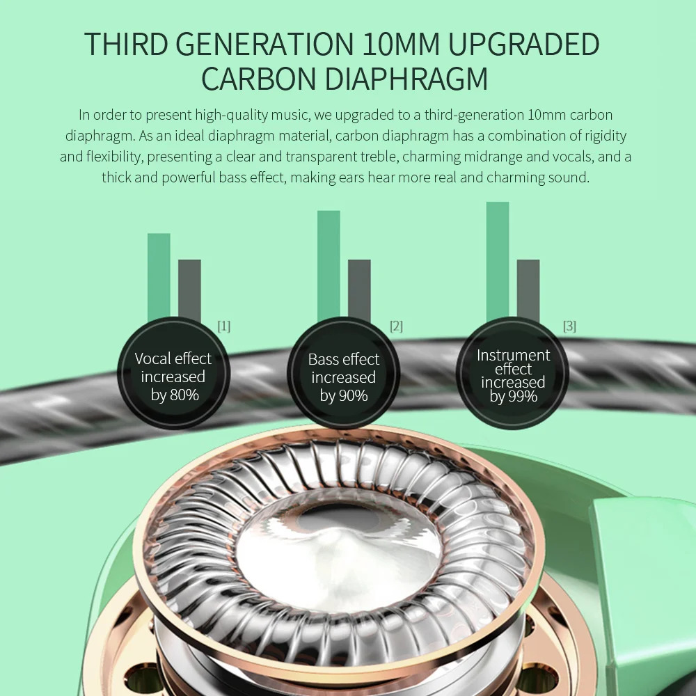 - 10mm Upgraded Carbon Diaphragm:Experience superior sound quality with the 10mm upgraded carbon diaphragm, delivering clear and dynamic audio.