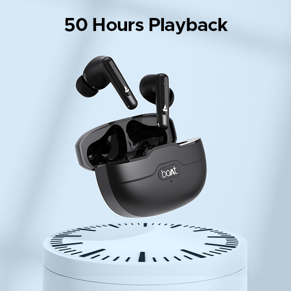 - Playback Time: Up to 50 hours total (with charging case)