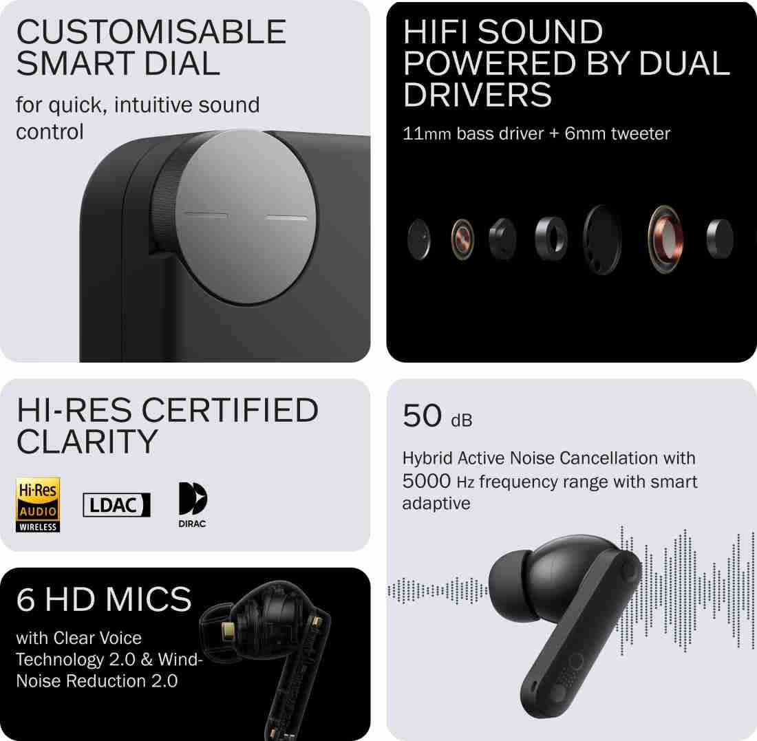Talk time with ANC off: 25 hours with case and 6 hours with buds only