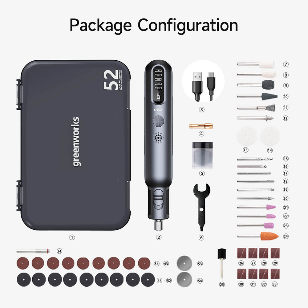 • Accessories: The set includes 52 accessories, providing users with a range of options for different tasks.
