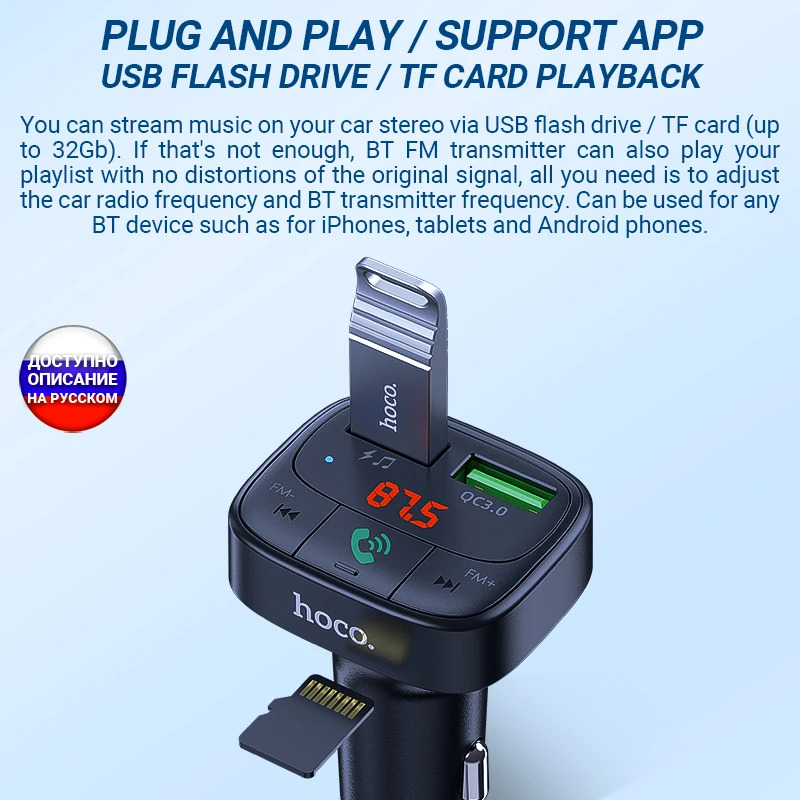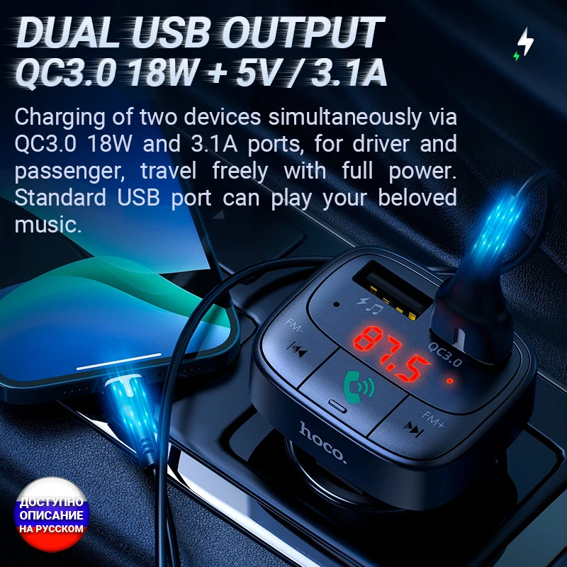 Hoco Car charger “E59 Promise” QC3.0 BT FM transmitter