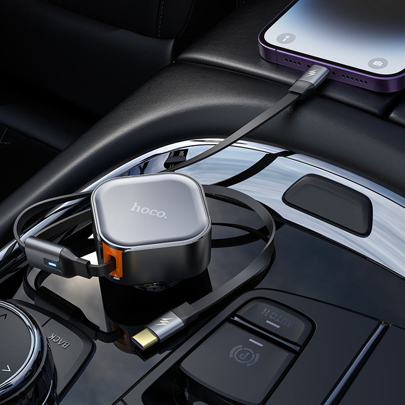 • Hoco Cleaver PD30W Car Charger with Telescopic Cable (Type-C + iP)
