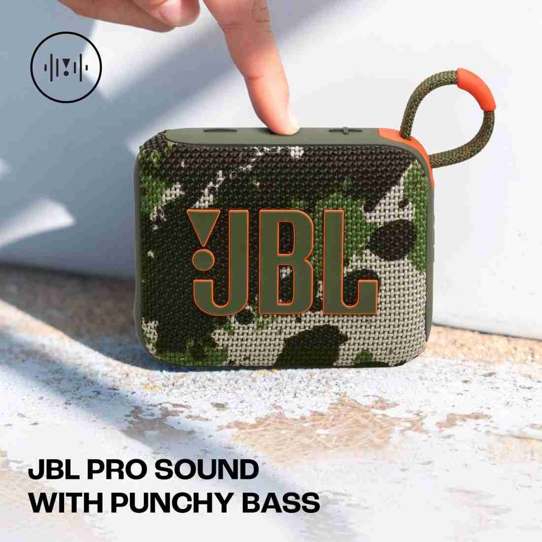 • The JBL Go 4 Portable Bluetooth Speaker is a compact yet powerful audio device that delivers exceptional sound quality in a small package. With its ultra-portable design, you can take your music anywhere and enjoy JBL Pro Sound with punchy bass that will impress even the most discerning audiophiles.