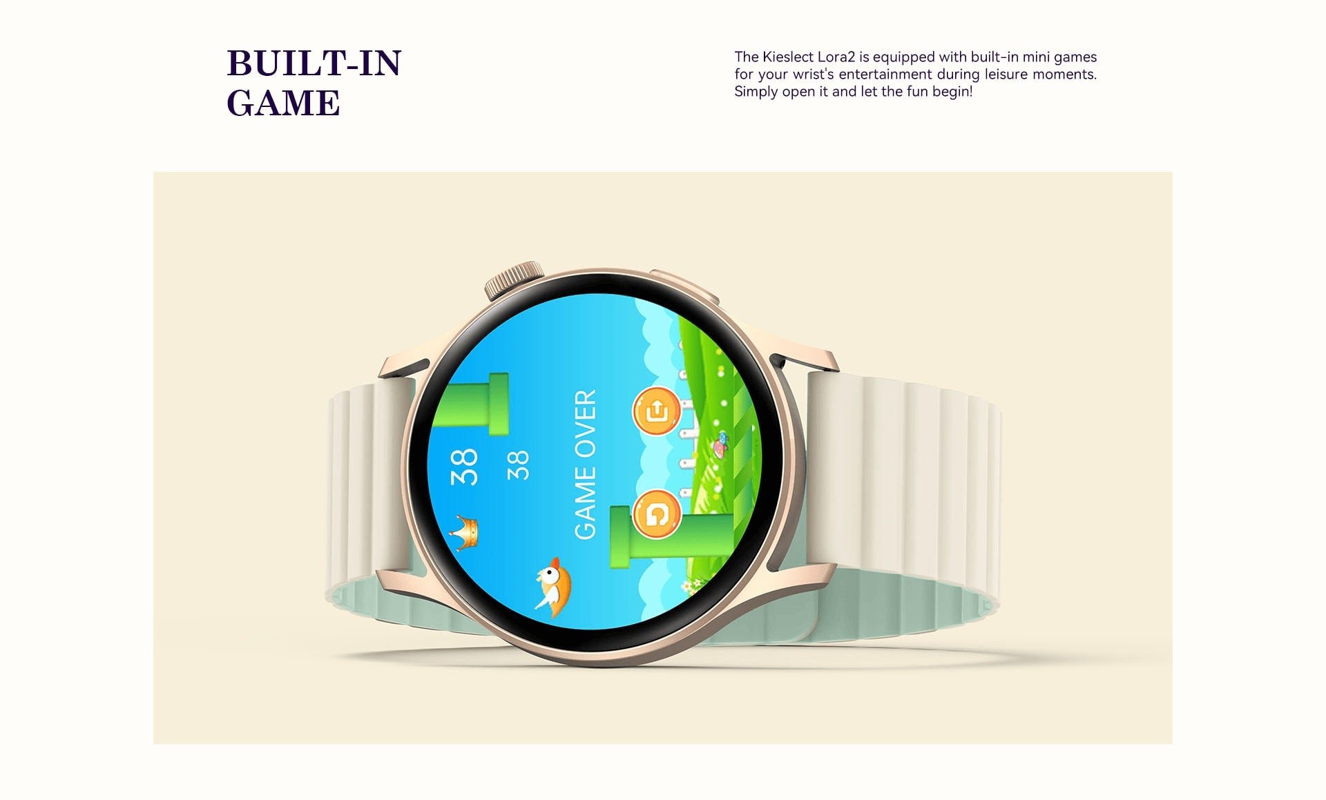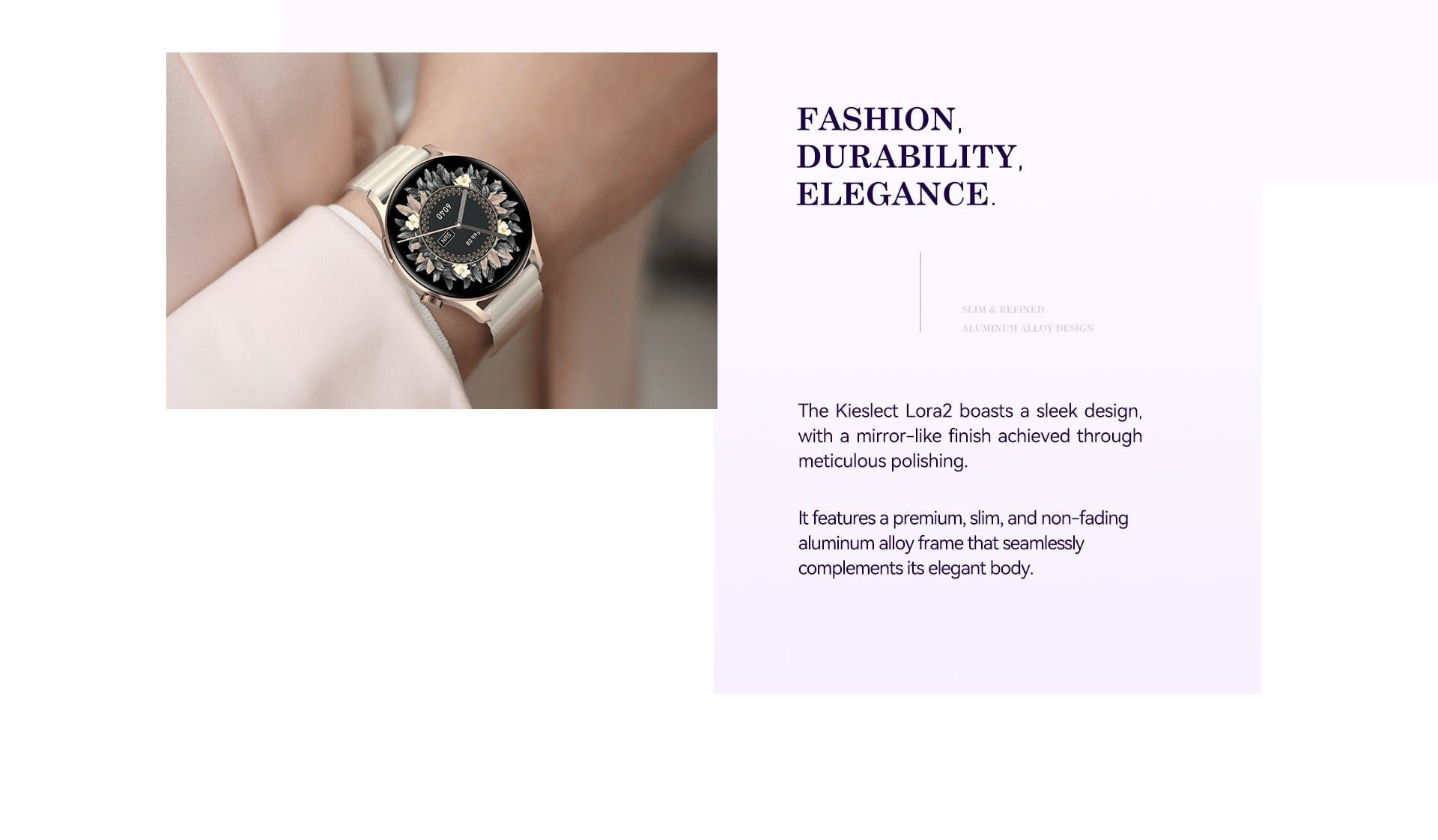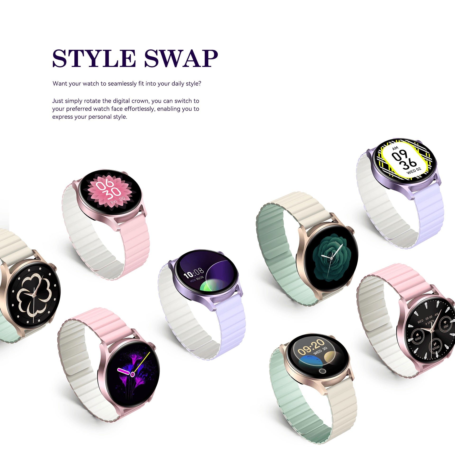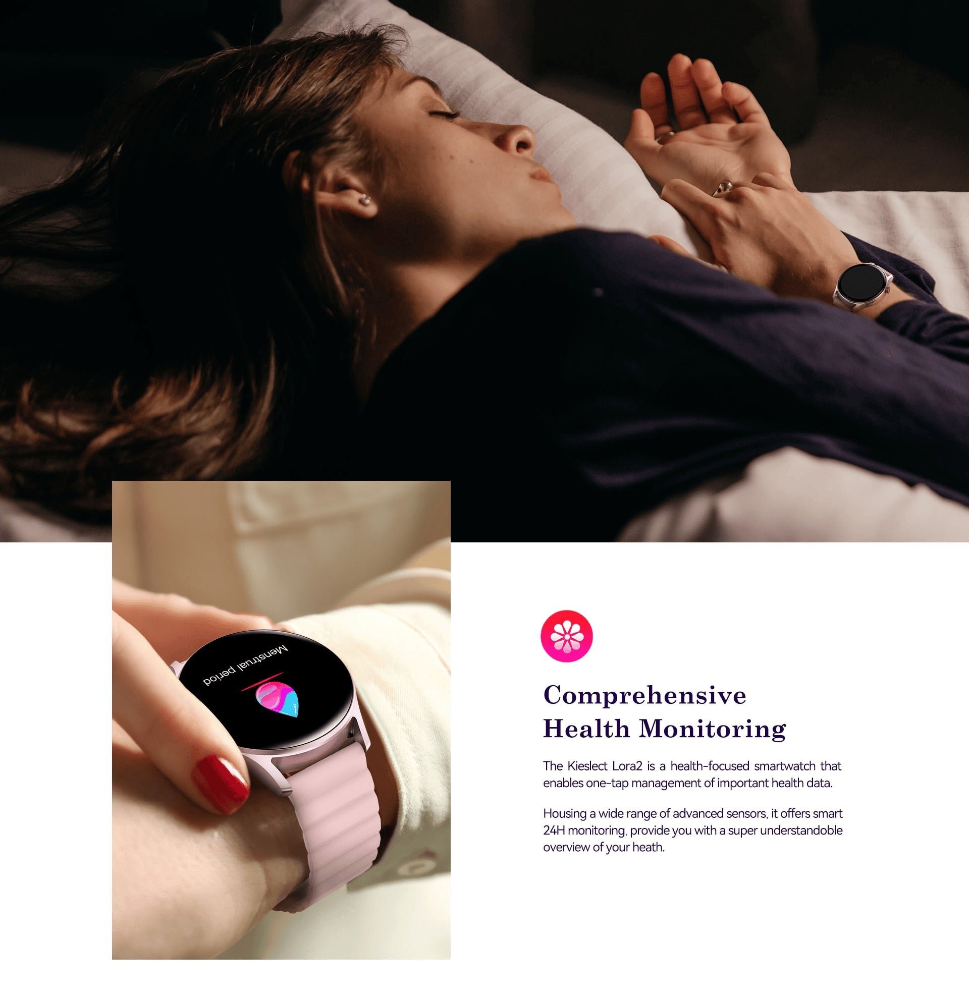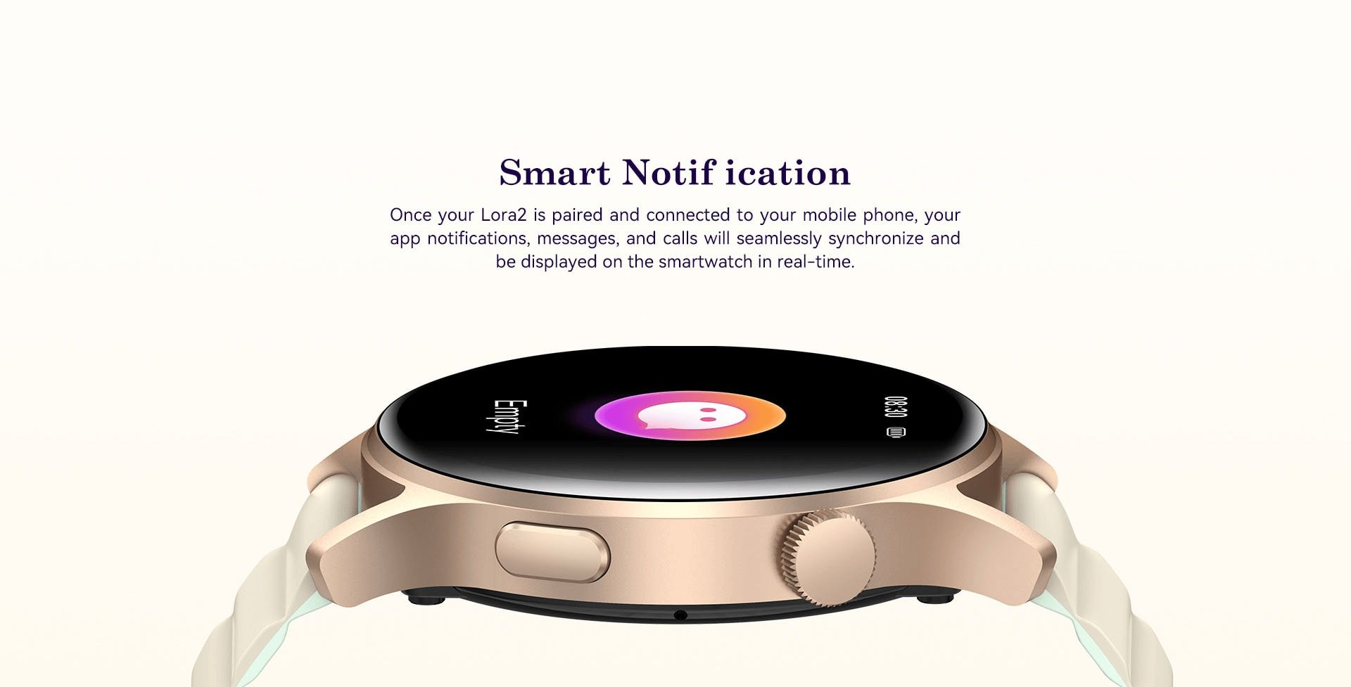 • Easy 24H Health Management: Lora 2 is a health-focused smartwatch that enables one-tap management of important health data. Housing a wide range of advanced sensors, it offers smart 24H monitoring of Blood-oxygen Levels & heart rate and tracks your sleeping patterns, providing you a super understandable overview of your health. The lady watch also records your current menstrual period to help you get predictions for upcoming menstrual & fertile period.