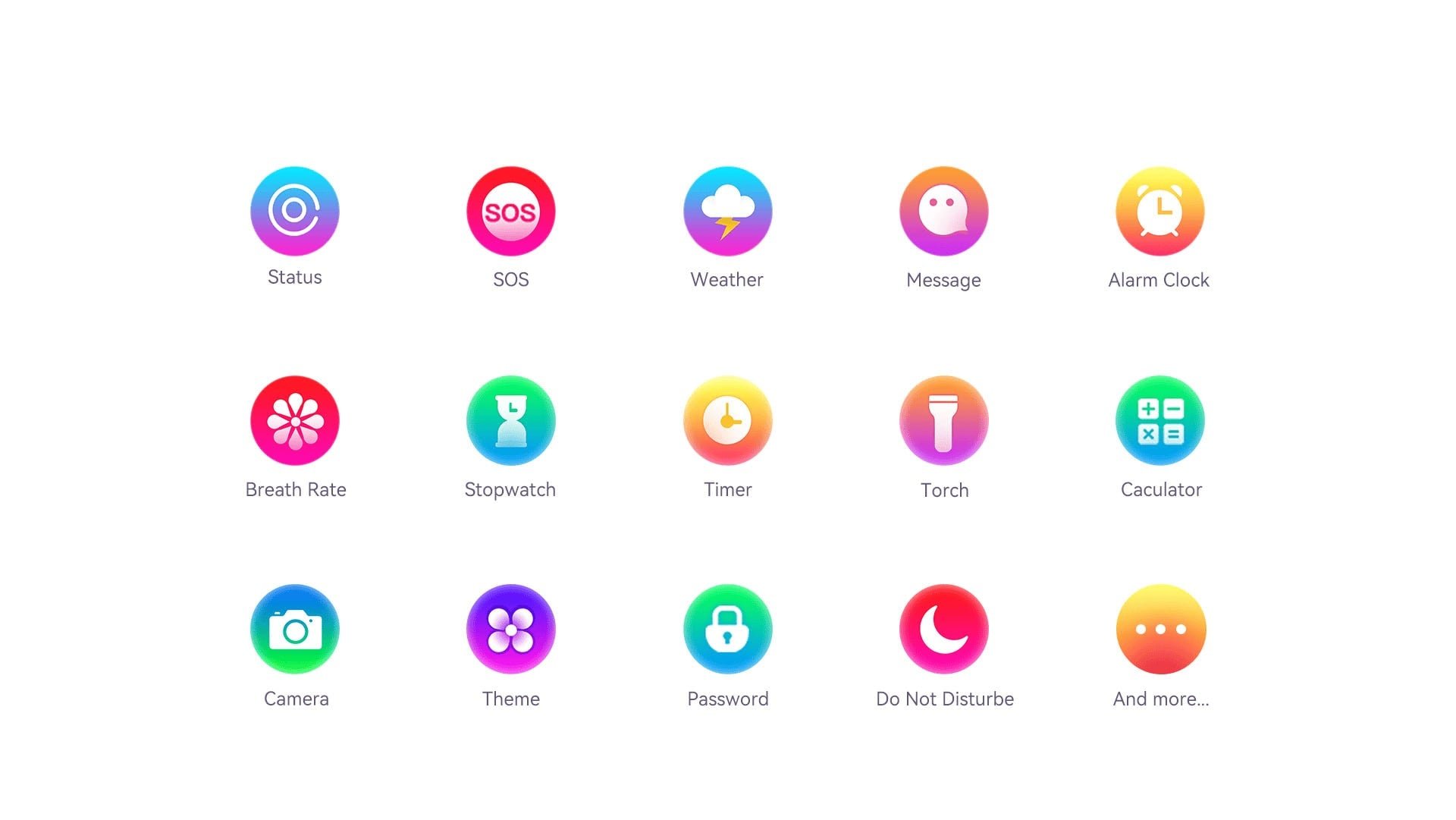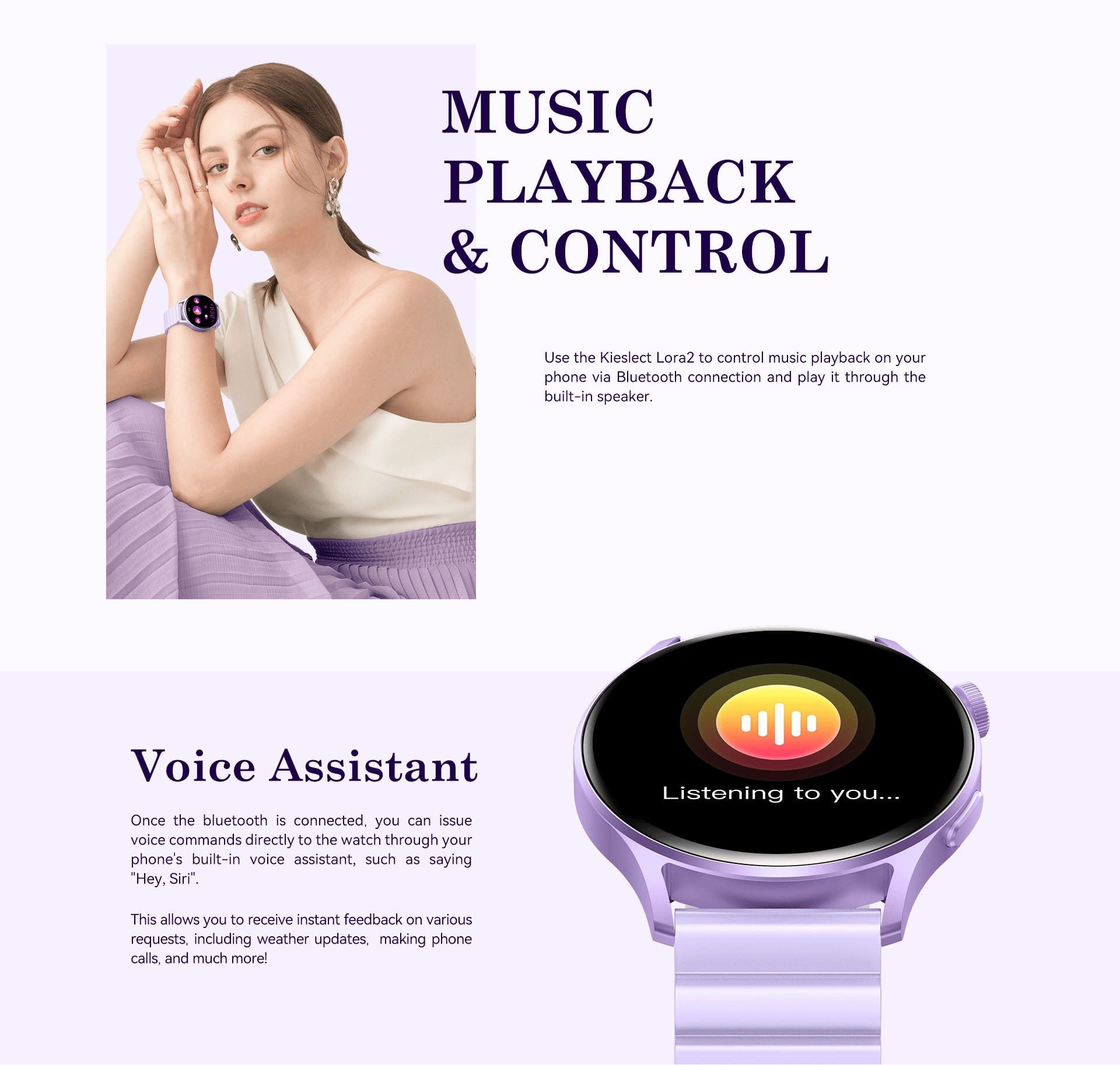 • Hassle-Free Music Player: Enjoy a hassle-free music journey with Lora 2. Boasting a powerful music player, the watch lets you stream the playlist via Bluetooth connection. you can play, pause music and adjust volume right on your wrist.