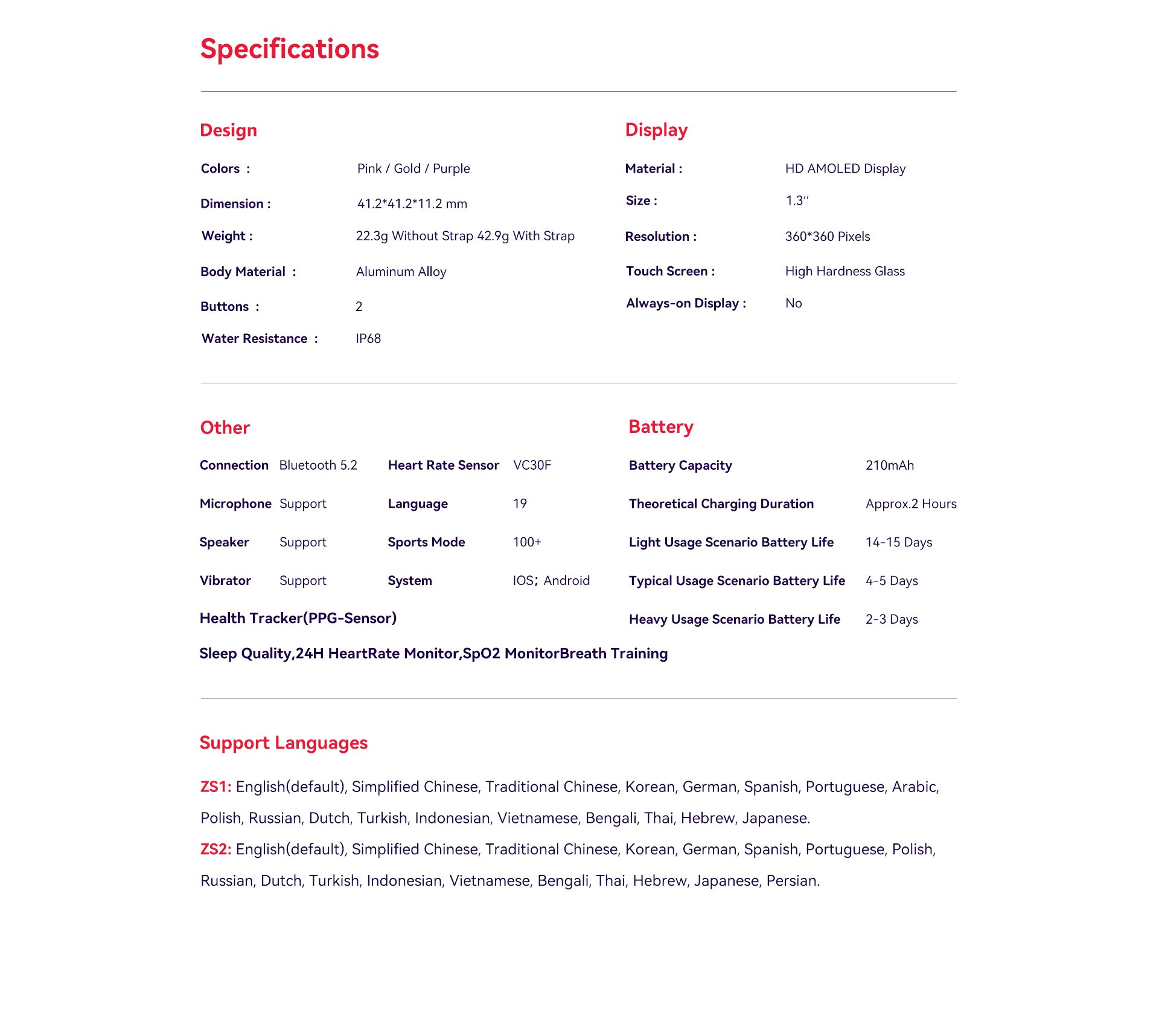 • Sensor: Sleep Quality, 24H Heart Rate Monitor, SpO2 Monitor, Breath Training
