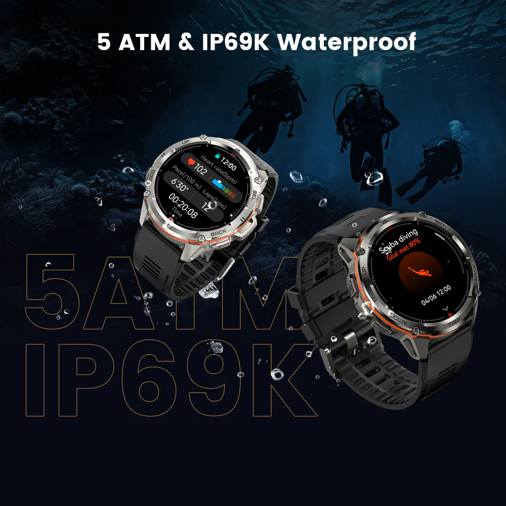 - 5ATM & IP69K Waterproof for Swimming/Diving