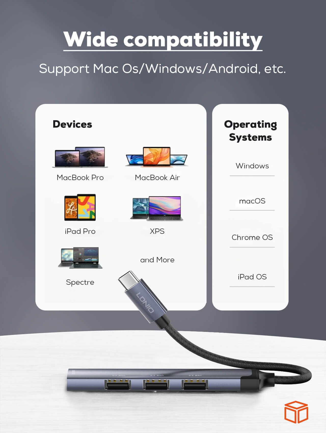 LDNIO DS-34C New Design Mini Converter Laptop Docking Station 4-in-1 USB C Small and Convenient for Carrying.