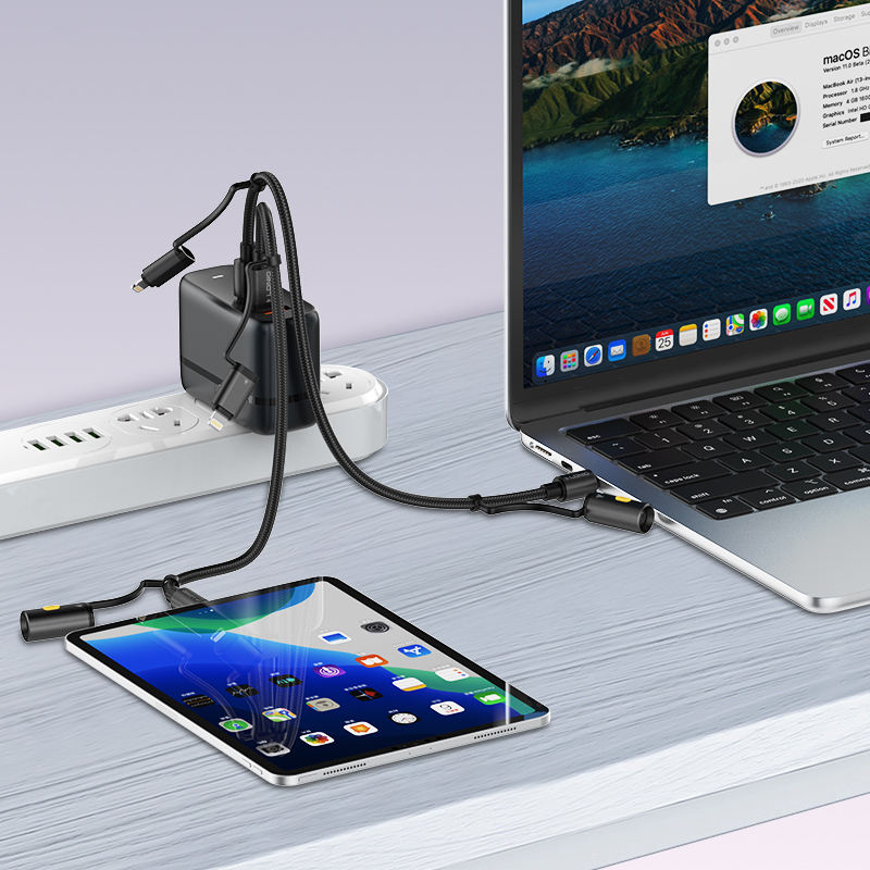 LDNIO LC19 65W 3-in-1 Super Fast Charging Data Cable With Portable LED Lighting