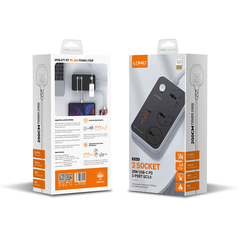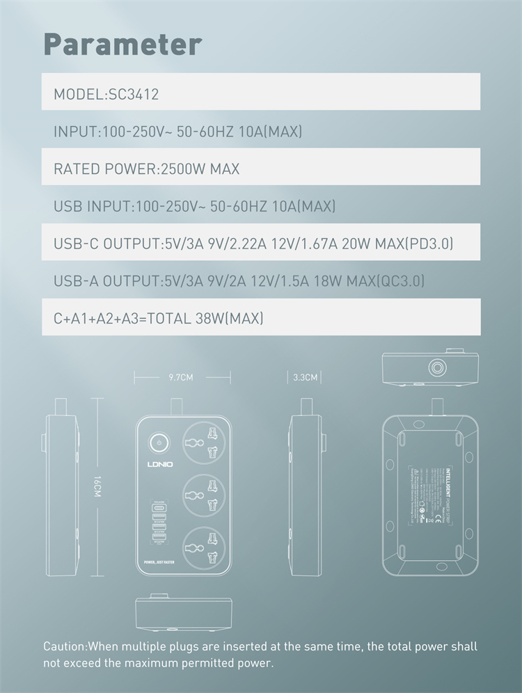 • MULTI PLUG -SUITABLE FOR ALL KINDS OF PLUGS AROUND THE WORLD 3 UNIVERSAL OUTPUT SOCKETS.