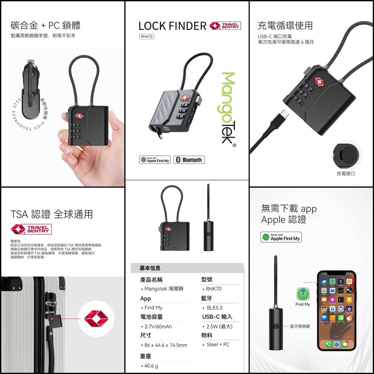 The MangoTek Lock Finder RHK70 is a next-generation smart travel lock that combines Apple Find My certification, TSA-approved security, and real-time wireless positioning into one sleek and durable device. Designed for frequent flyers, business travelers, and anyone who values peace of mind on the go, this lock ensures that your belongings remain both secure and easy to locate—no matter where your journey takes you.