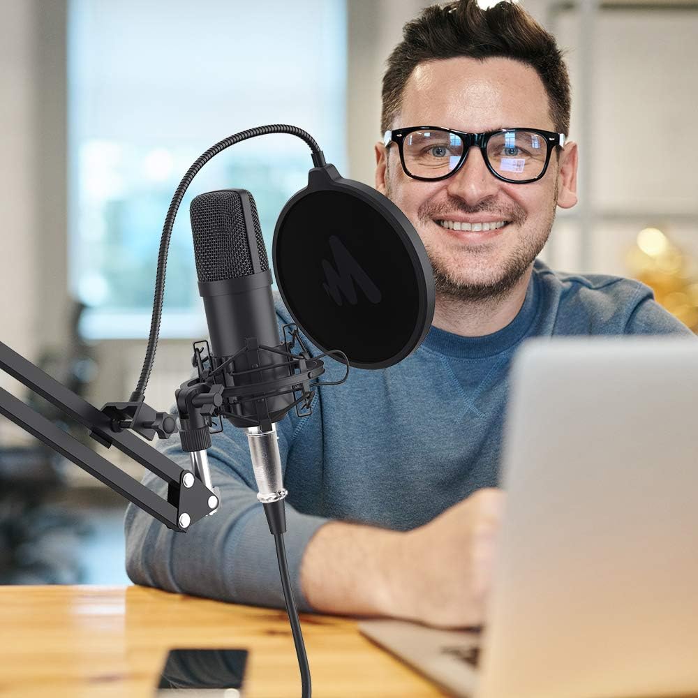 MAONO Condenser Microphone Kit Podcast Mic with Boom Arm Microphone Stand (AU-A03)