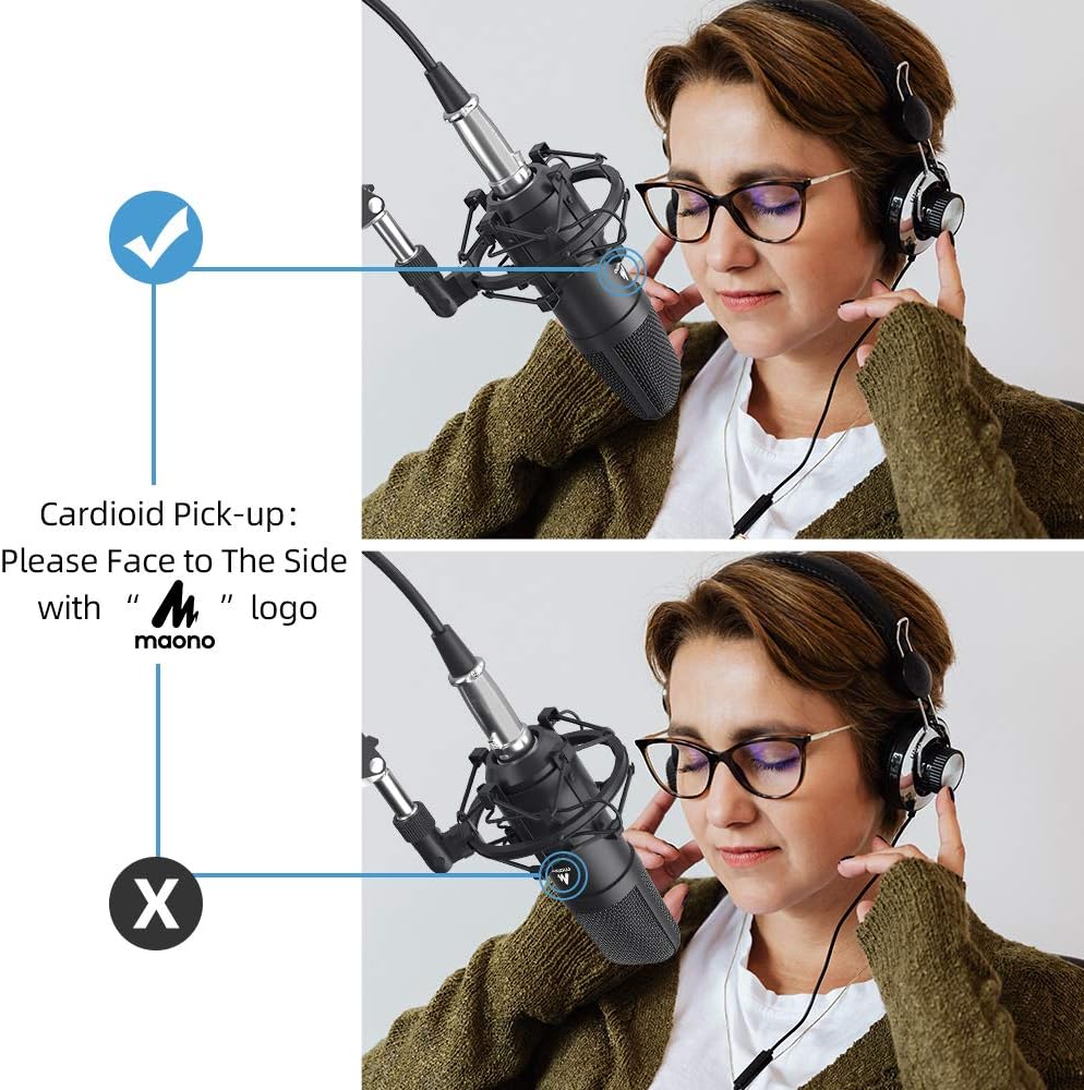 • Cardioid Pick-up Pattern: A cardioid pattern reduces background noise. Face the side with the Maono logo for optimal use.