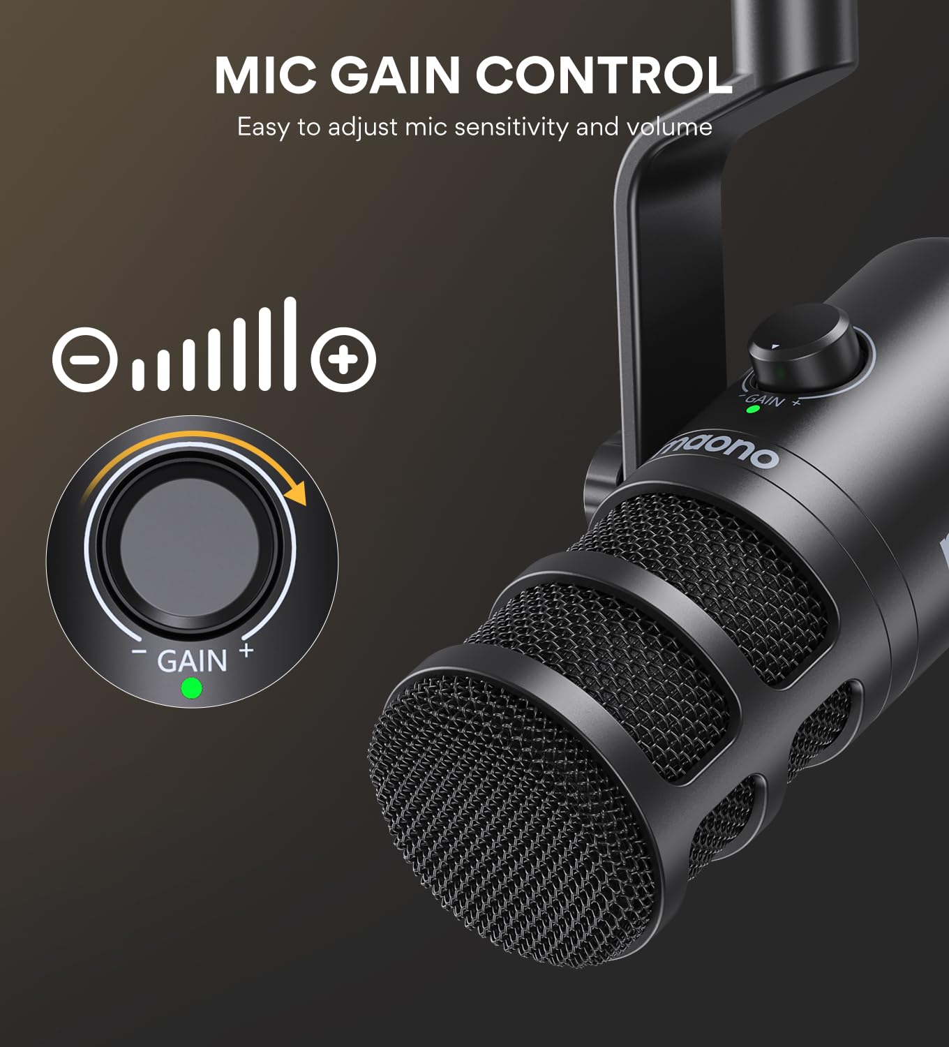 • Convenient Mic Gain: Includes a 1-button knob to adjust microphone gain, allowing you to find the desired volume without frequently moving the microphone or changing your position.