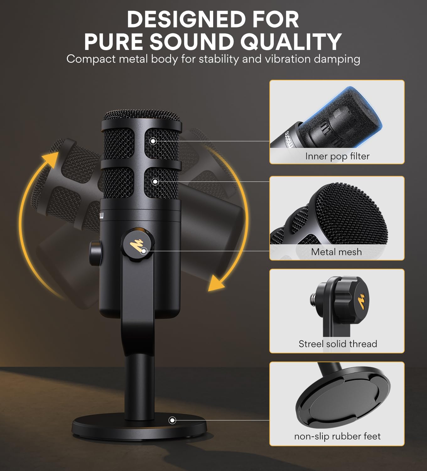• Effectively Noise Cancellation: Dynamic microphones significantly reduce low-frequency sounds, such as fans, and feature a built-in double-layer pop filter to physically filter noise.