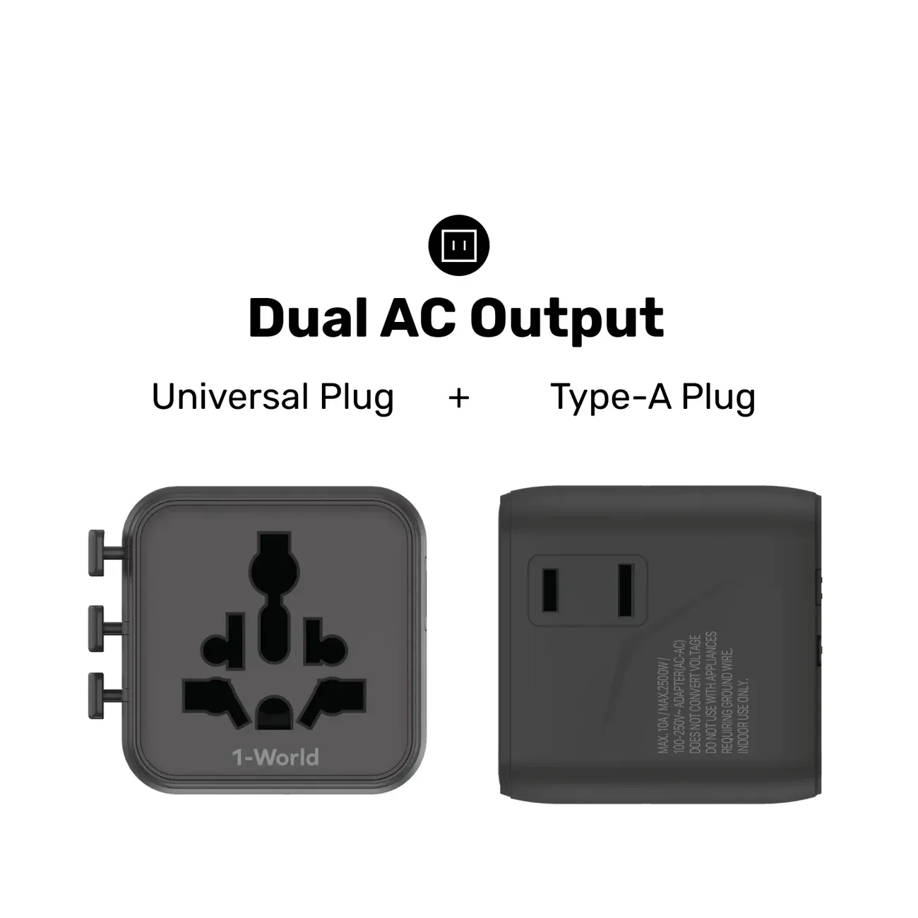 Travel light and say goodbye to the hassle of carrying multiple chargers. Our versatile travel adapter works in over 180 countries, so you can stay connected no matter where your adventures take you. - Dual AC Outlet