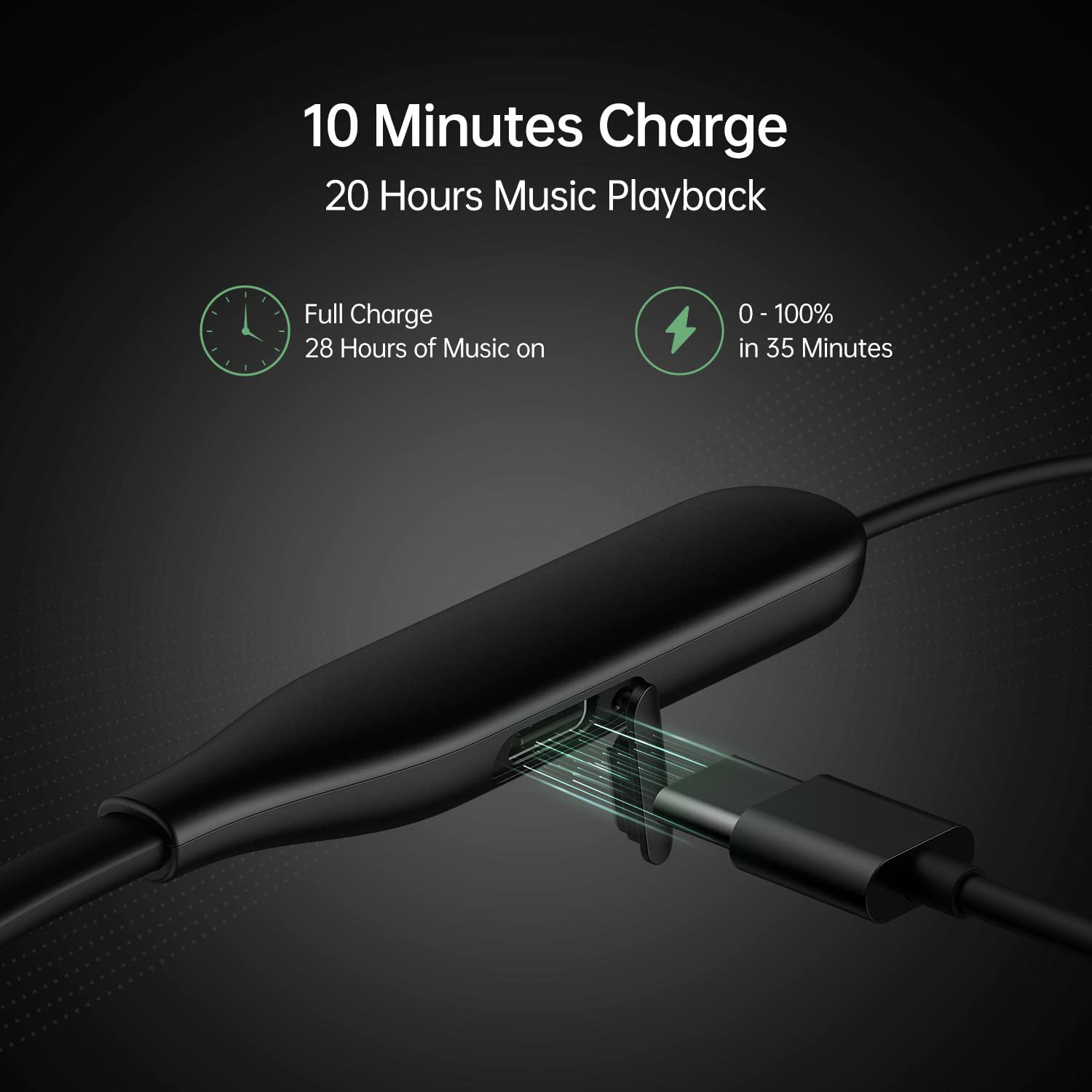 • Super Fast Charge: 10 minutes of charge provides 20 hours of music playback