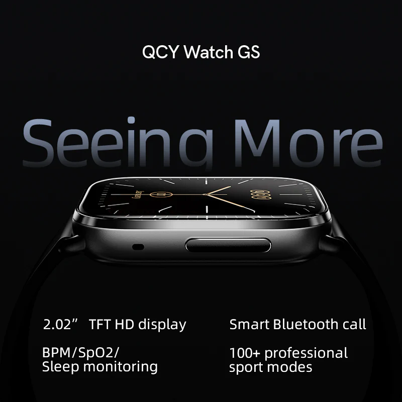 - The QCY Watch GS Bluetooth Calling Smartwatch is a cutting-edge device that seamlessly blends style and functionality. Boasting a large 2.02-inch HD TFT display, this smartwatch provides an immersive viewing experience with a remarkable 78% higher screen-to-body ratio and a resolution of 320*385 pixels. It’s not just a watch; it’s a visual delight.