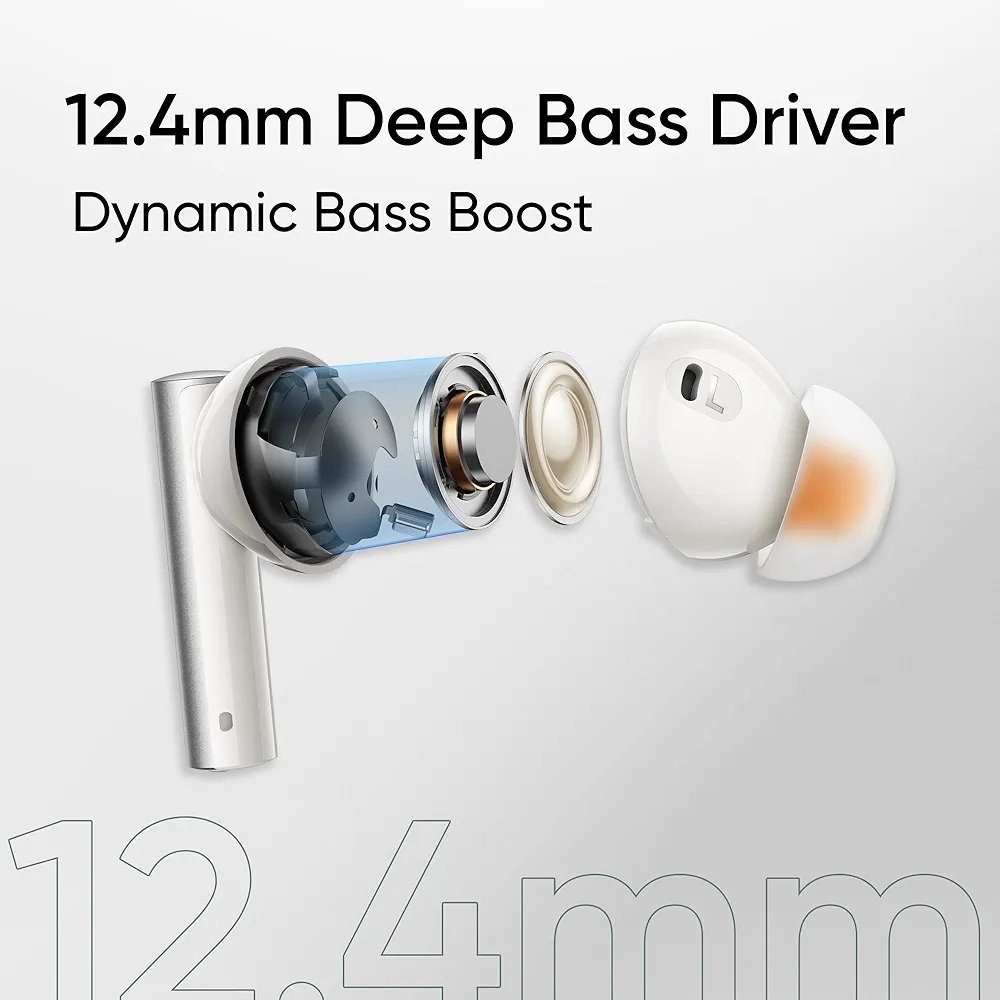 • Silence the Noise, Amplify the Experience:The world can be a noisy place. But with the Realme Buds Air6, you can shut out unwanted distractions. Featuring 50dB Intelligent Deep Noise Cancellation 2.0, these earbuds effectively reduce ambient noise up to 4000Hz.