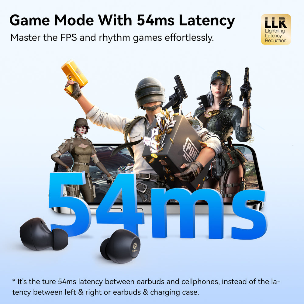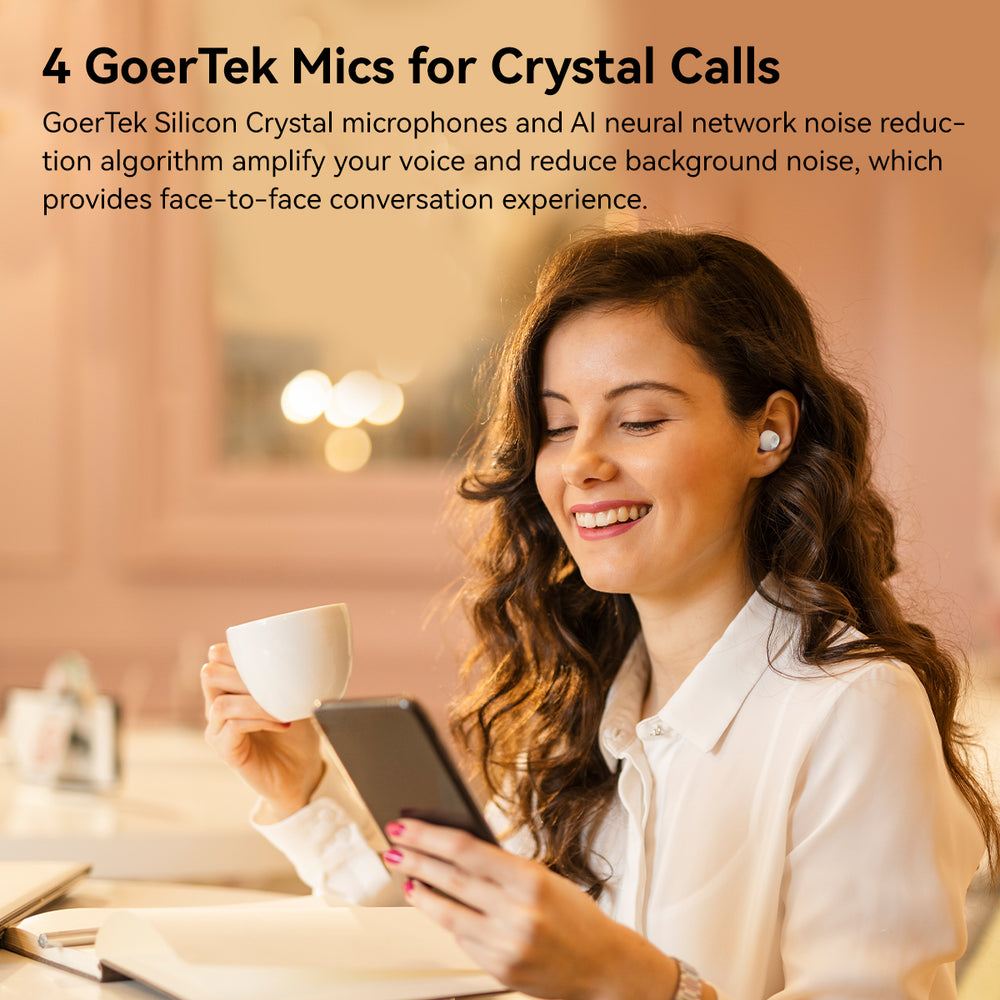 • 4 GoerTek HD Mics & Game Mode – Featuring 4 GoerTek silicon crystal microphones and powered by AI neural network noise cancellation algorithms, these headphones effectively eliminate background noise interference for a crystal-clear face-to-face calling experience. Additionally, the Gaming Mode will help you master FPS and rhythm games with the imperceptible latency of 54ms.