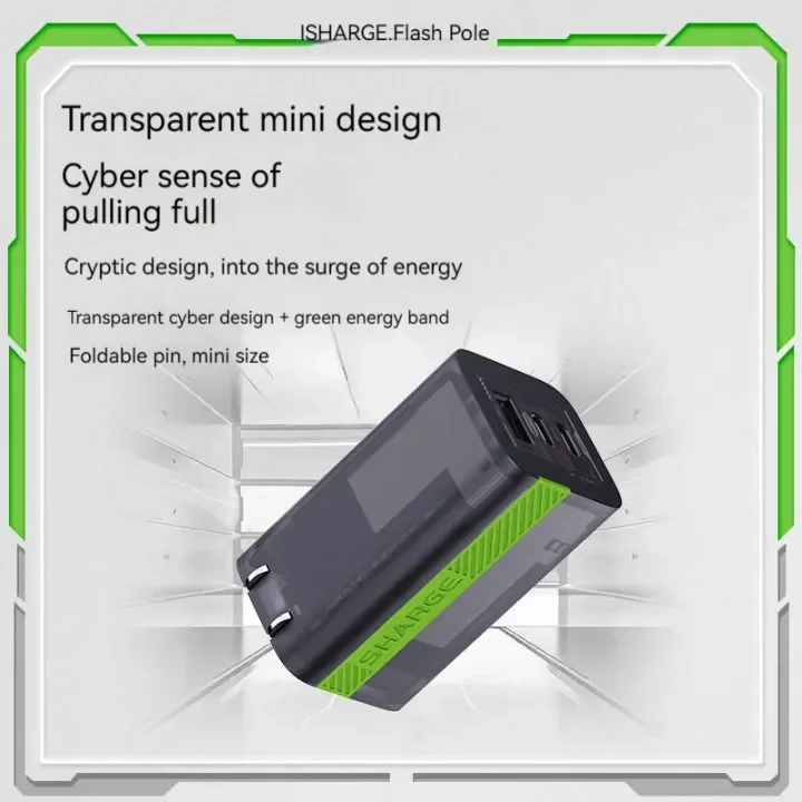 • GAN Chip: Highly equipped with Gallium Nitride power chip. The small volume can spurt energy, achieving a miniature size while maintaining full-power fast-charging output, quickly replenishing the device’s power.