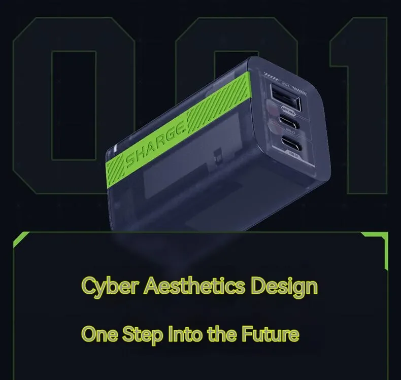 • Transparent Hermit: Into the surging energy. Black transparent Cyber design with vaguely visible internal components equipped with a green energy band; the future of Cyber design injected into charging products.