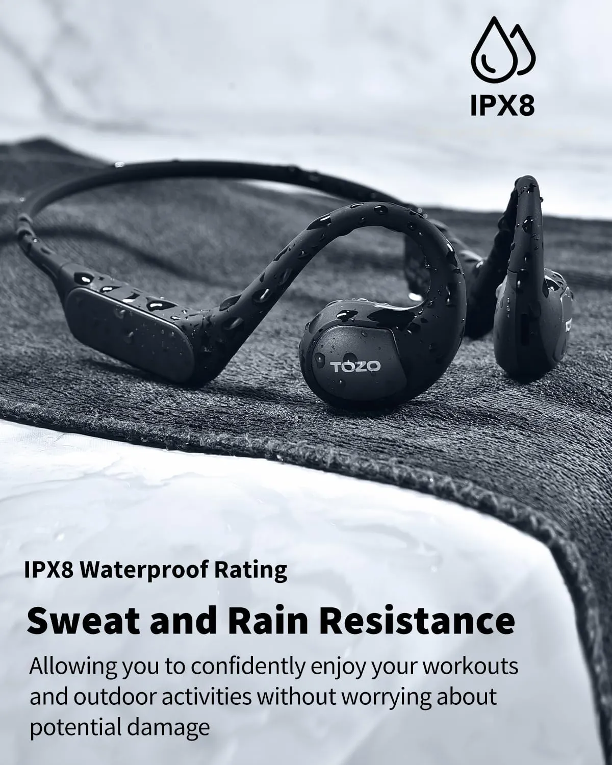• The TOZO OpenReal Wireless Earbuds feature an innovative open-ear design that rests comfortably on your ears without entering the ear canal, allowing for all-day wear without fatigue or discomfort.