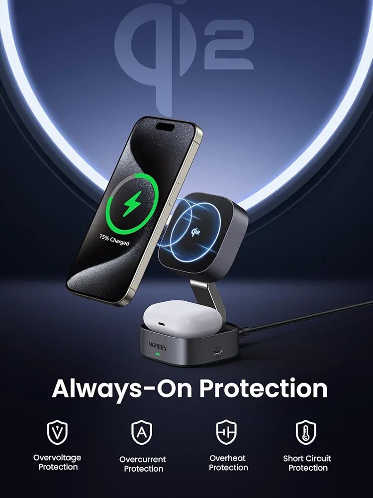 The Lowest Price Of UGREEN 2-in-1 Qi2 Magnetic Foldable Fast Charging Station