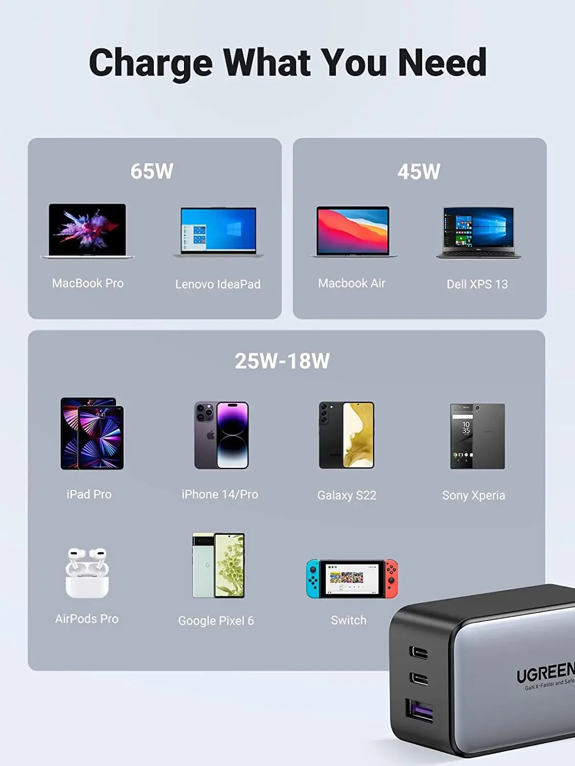 - Material: Made with durable Gan (Gallium Nitride) for enhanced efficiency and longevity.