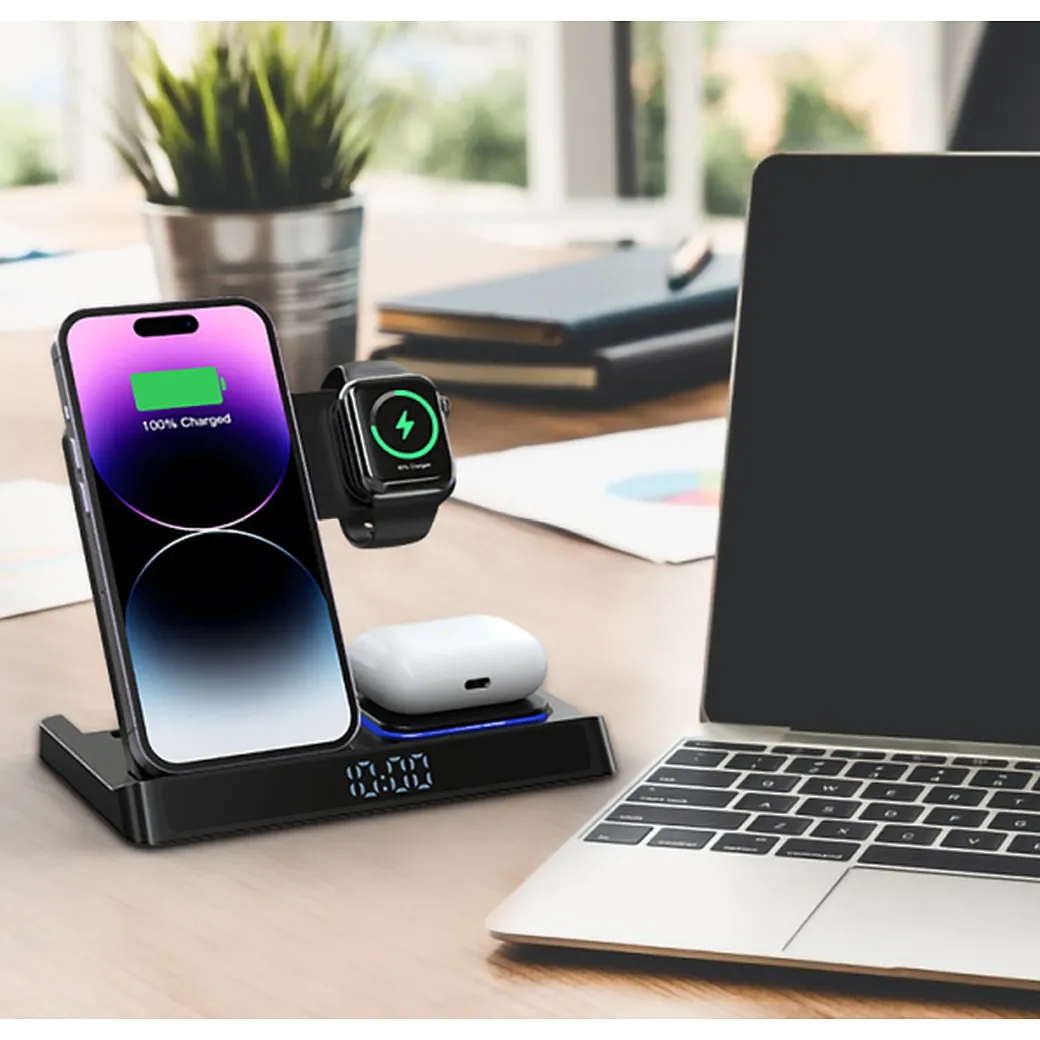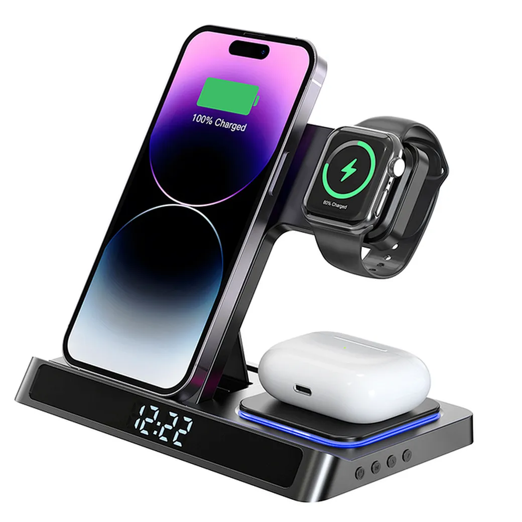 - Charges up to 5 devices simultaneously (phone, watch, earbuds, phone stand, watch stand)