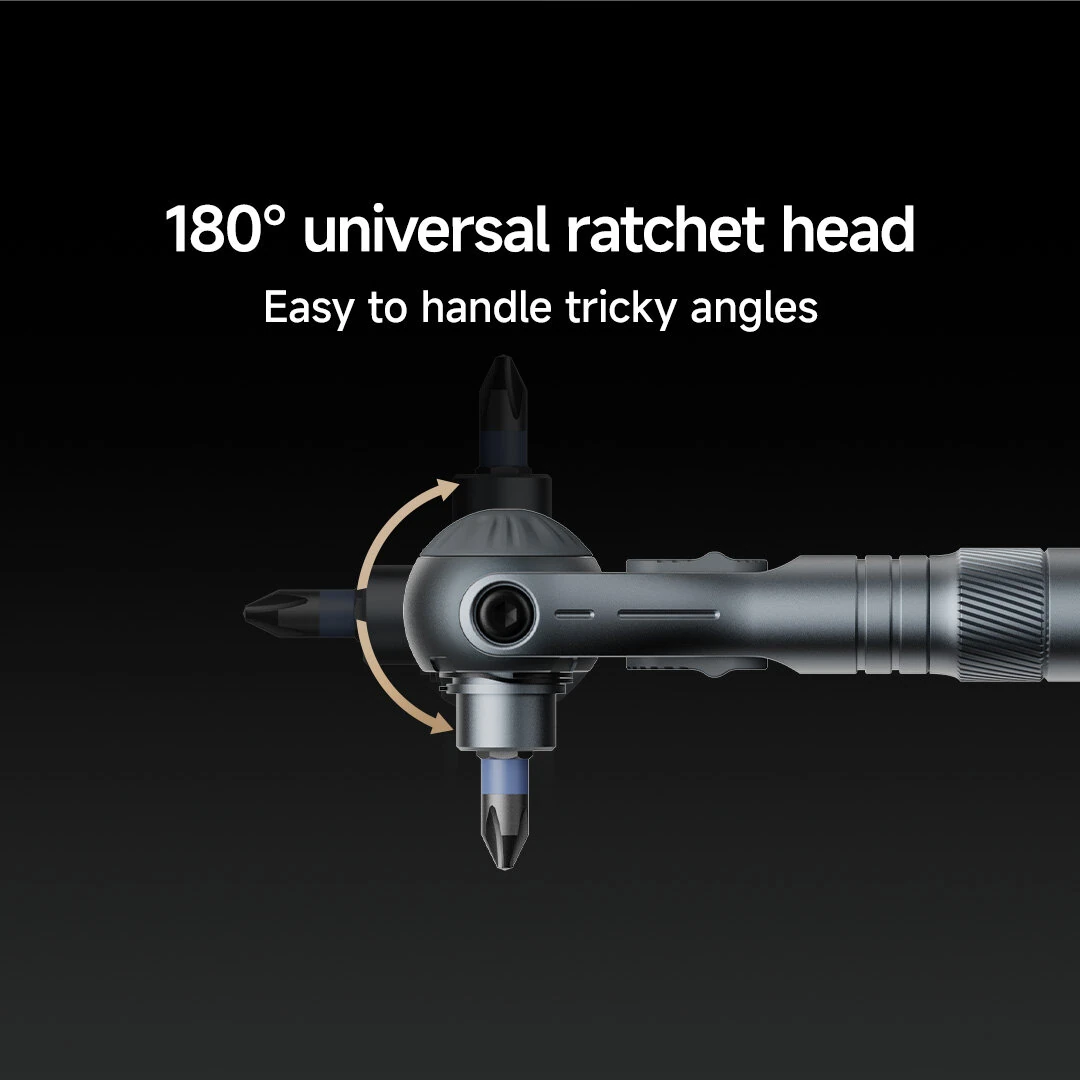 180° Universal Ratchet Head: Easily reaches tricky angles and tight spaces with a flexible head that adapts to any position.