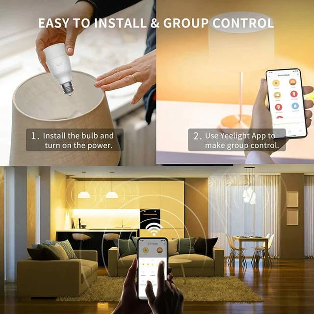 • Support APP/Group Control: Control multiple smart lights bulbs simultaneously to set the atmosphere for the entire room via the Yeelight app. Easily adjust the brightness with a single touch. Works with a 2.4GHz Wi-Fi network.