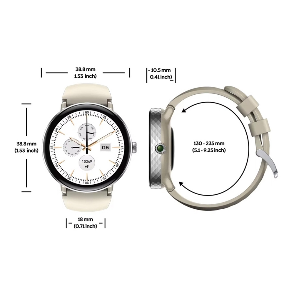- Equipped with a vibrant 1.3-inch AMOLED display offering crisp visuals and vivid colors.