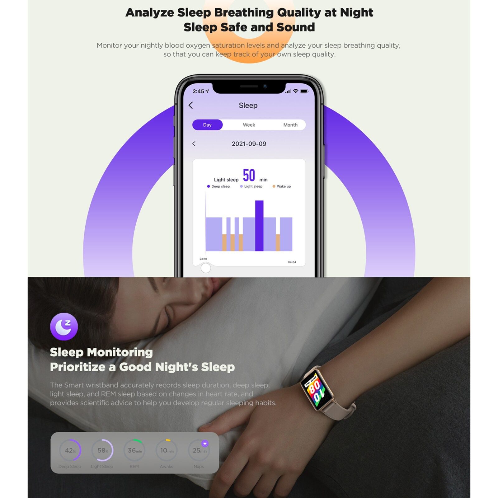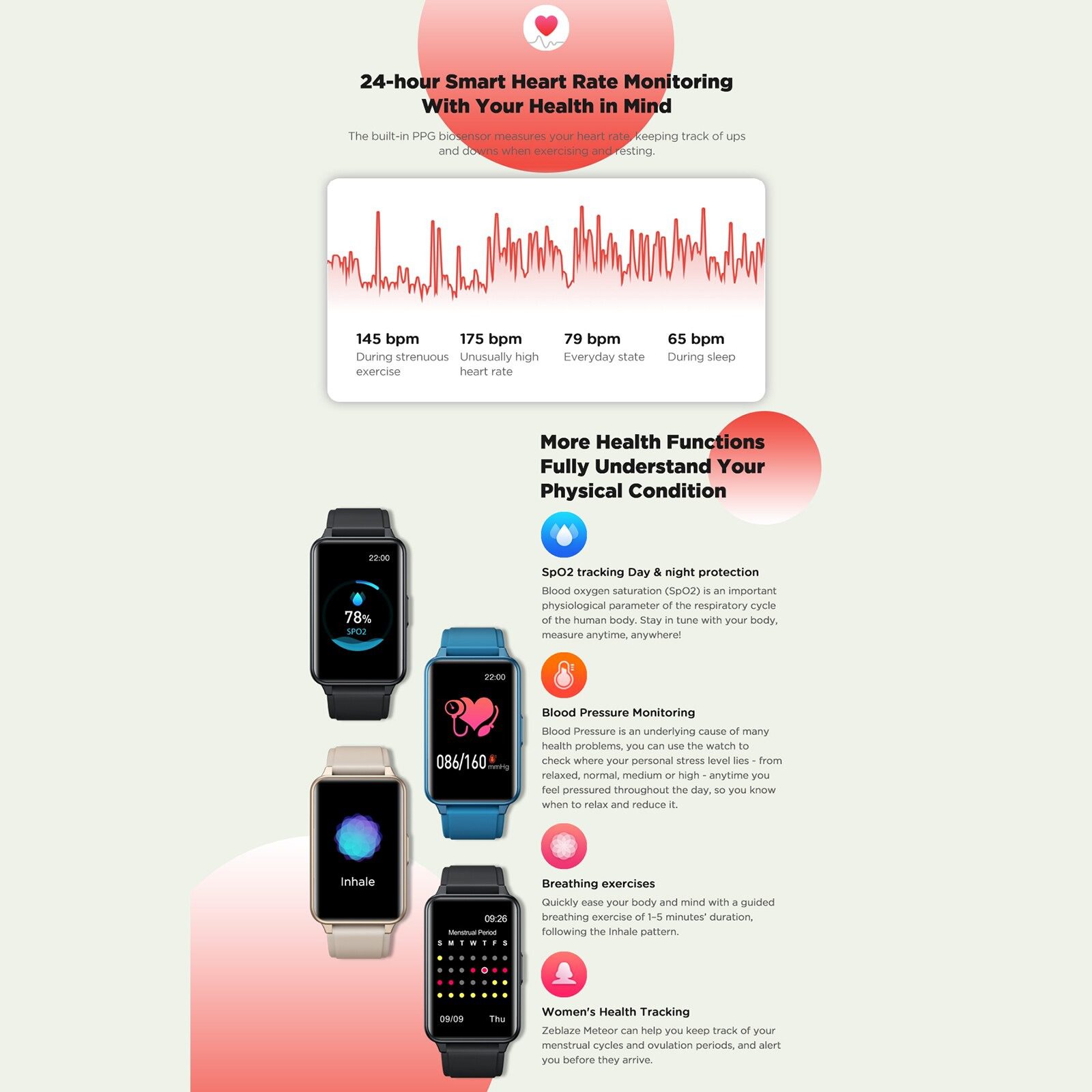 - Health Monitor: Automatically monitor and record your heart rate, blood pressure, blood oxygen and sleep data, helping you adjust yourself for a healthier lifestyle.